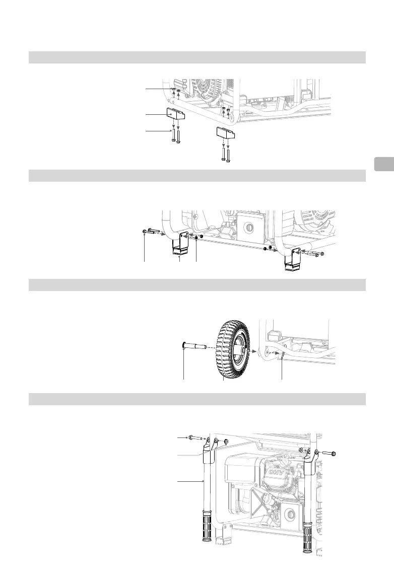 Sejajarkan lubang pemasangan pada kaki penyokong dengan lubang pada bingkai penjana. Masukkan bolt ke