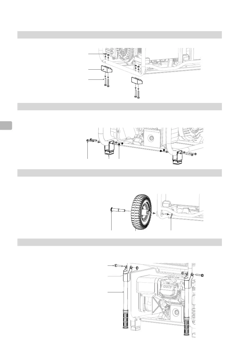Alinee los oricios de montaje del pie de apoyo con los del bastidor del generador. Inserte los tornillos en los