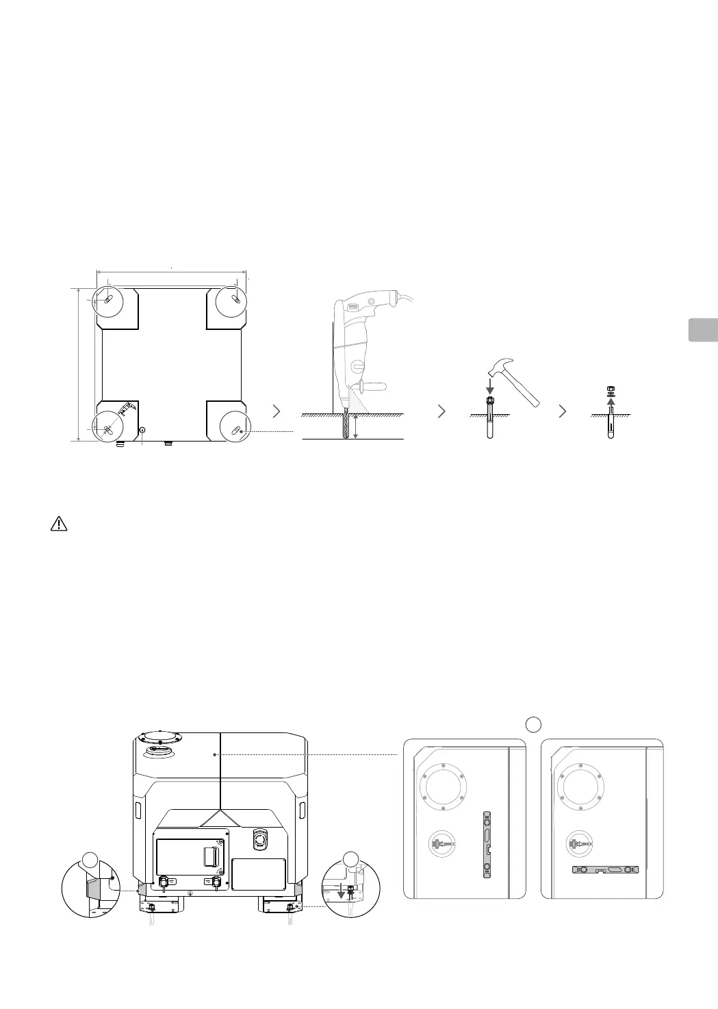 É necessário fabricar previamente uma base de betão ou uma base com estrutura de aço no local de instalação.