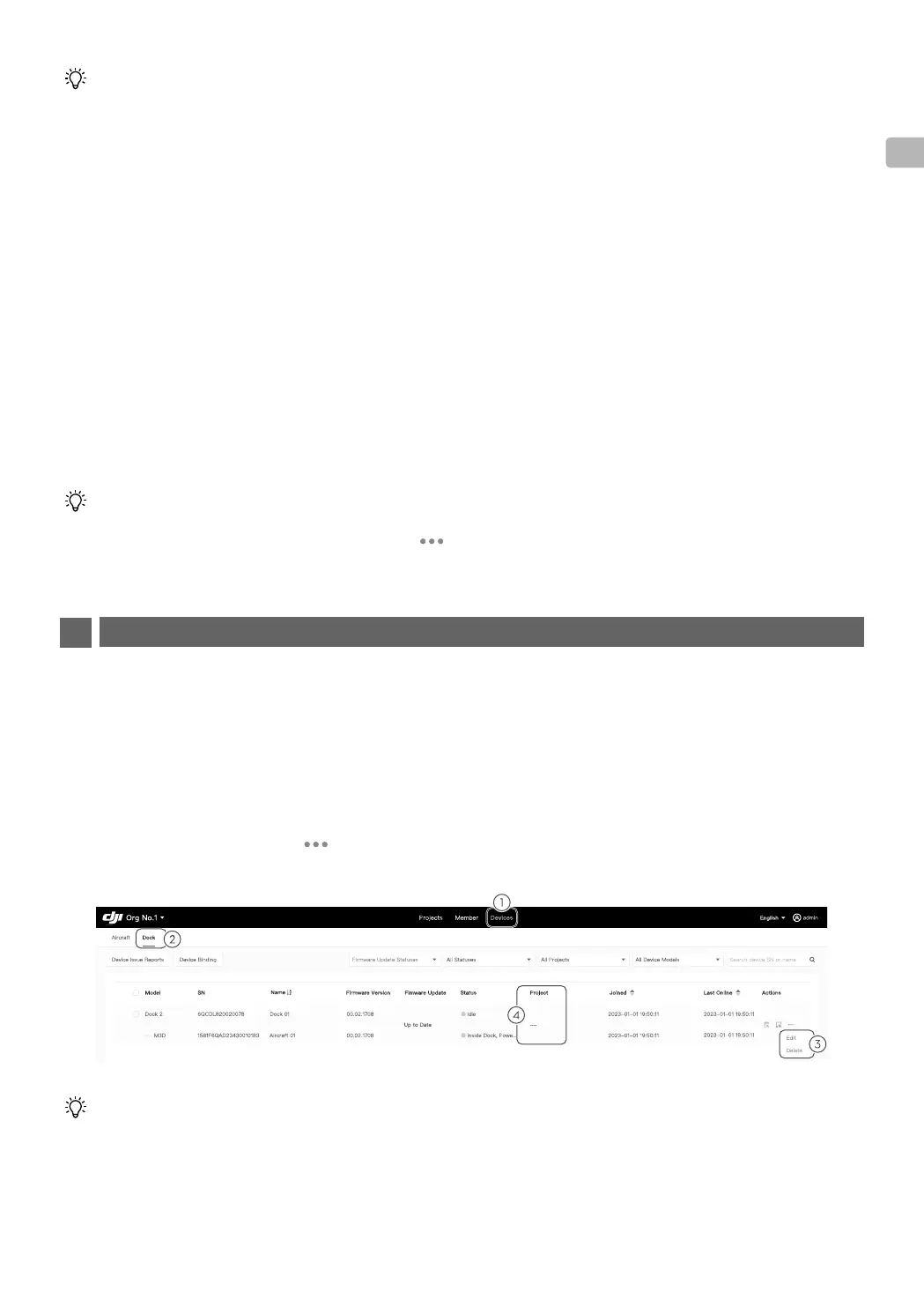 3. Click Devices > Dock > Actions > Edit as shown in the diagram and add the dock to the specified project
