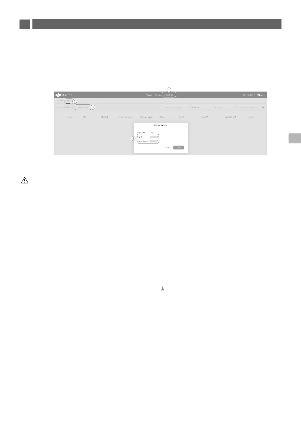 conta DJI. Clique para criar uma organização, preencha as informações da organização e clique no nome da