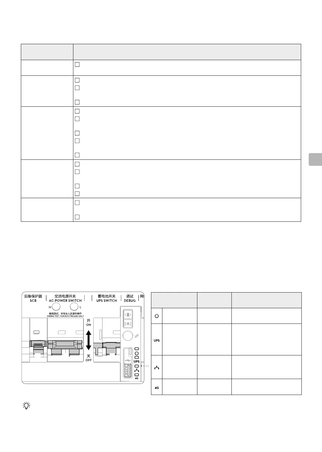 2. Os indicadores do quadro elétrico devem exibir o seguinte em até 30segundos. Caso contrário, realize os
