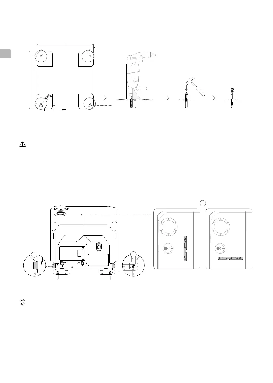 若出現膨脹螺栓難以對準 Dock 地脚孔位的情况,調整時切勿將手伸入 Dock 地脚下方,避免受傷。