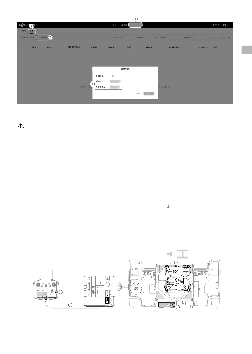 當 Dock 與遙控器連接,透過 App 一鍵開啟艙蓋時,請注意與艙蓋活動機構保持距離,避免造成人身傷