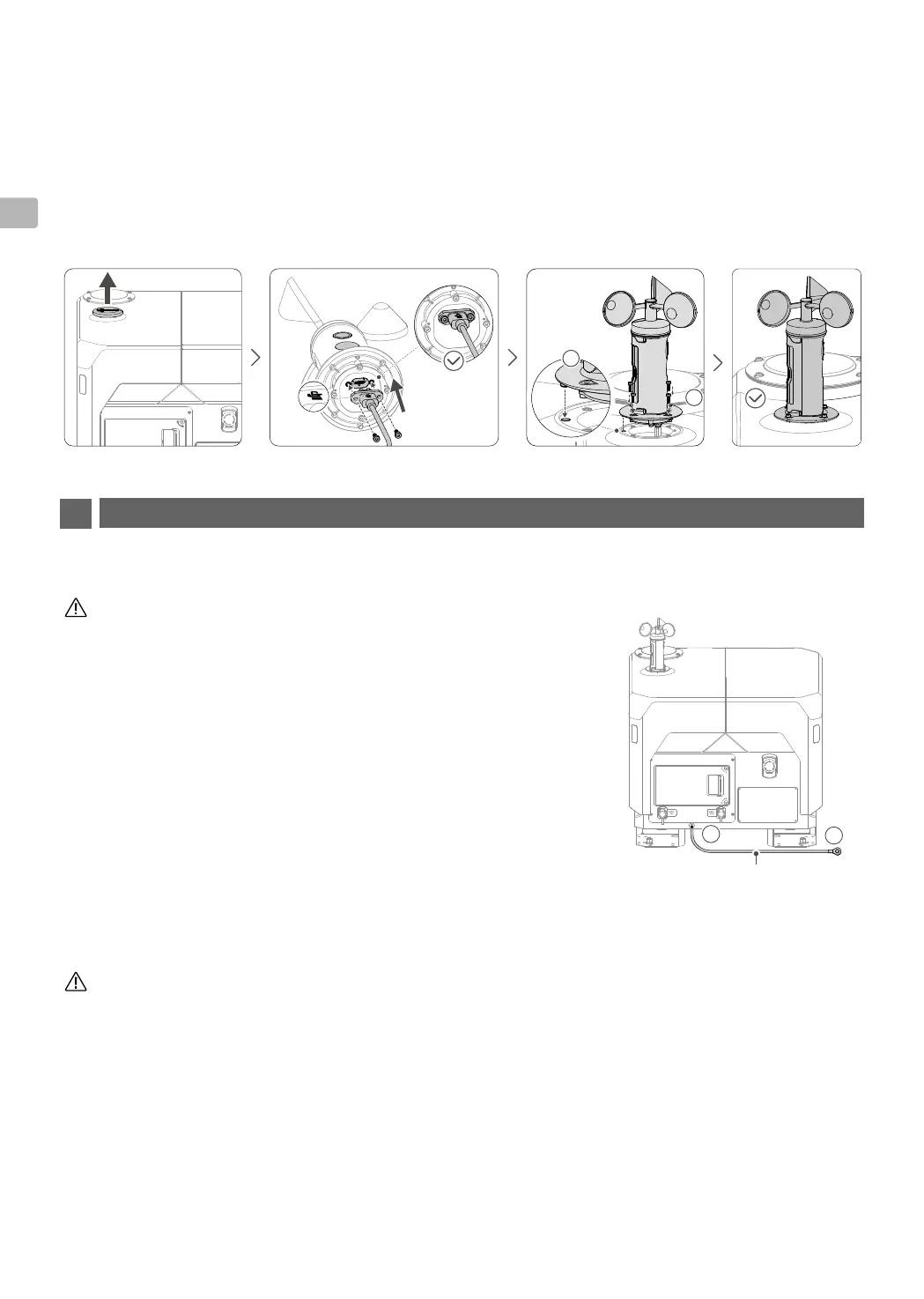 スパナを使用し、4本のねじを締め、風速計モジュールを固定します。