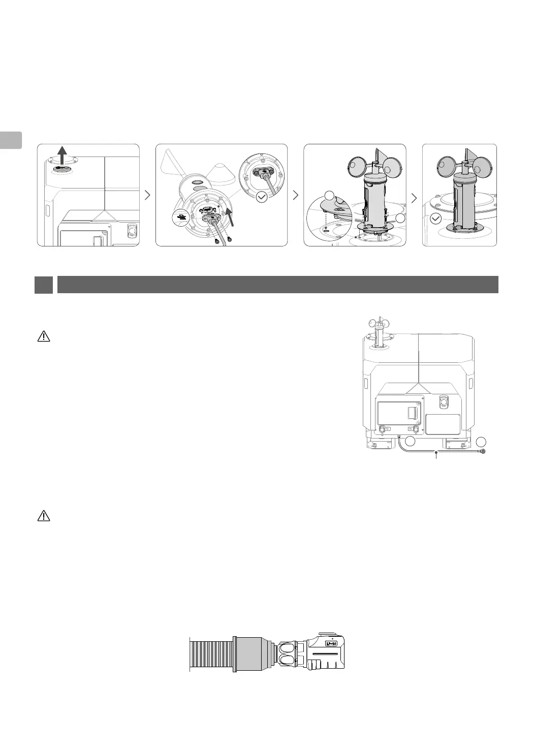 1. Dock 커버 상단에 있는 풍속계 모듈 마운트의 커버를 분리합니다. 풍속계 모듈을 박스에서 제거합니다.