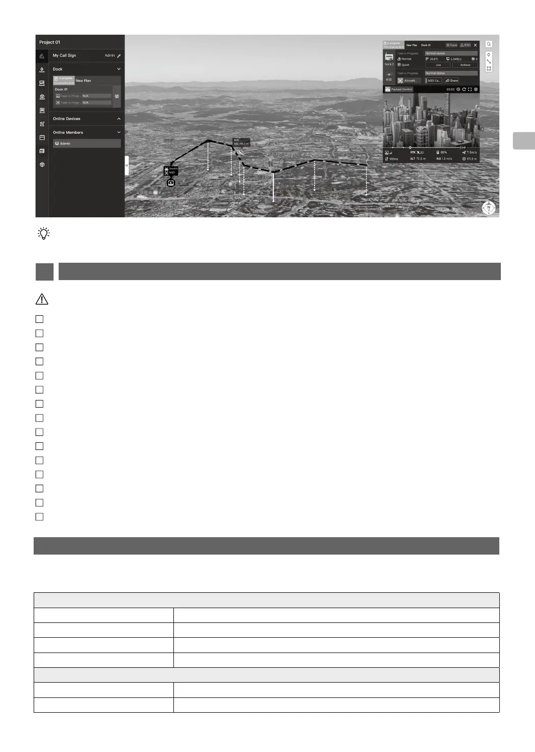 • 비행 임무 중에 비상 정지 버튼을 눌러 기체가 대체 착륙 지점으로 비행할 수 있는지 테스트합니다.
