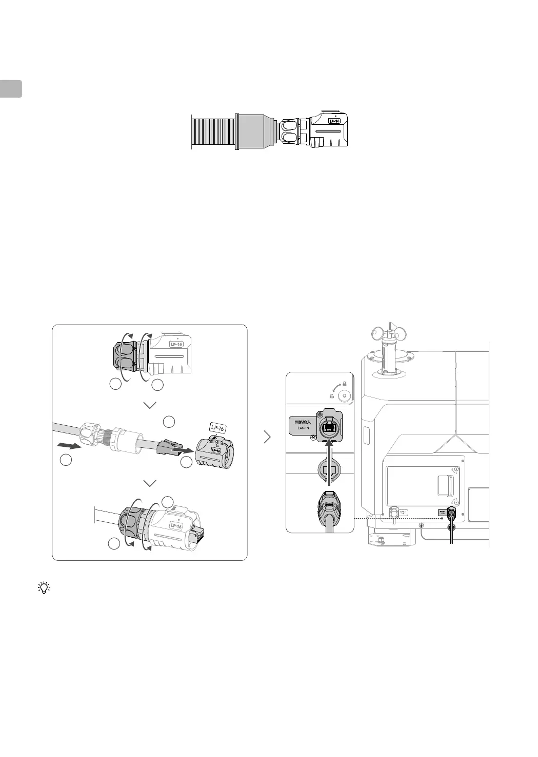 2. Open the cover of the LAN-IN port and securely connect the Ethernet connector to the LAN-IN port until a