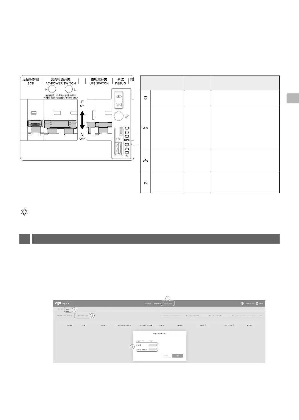 2. En 30 segundos, los indicadores de estado del gabinete eléctrico deben mostrarse como se indica. De lo