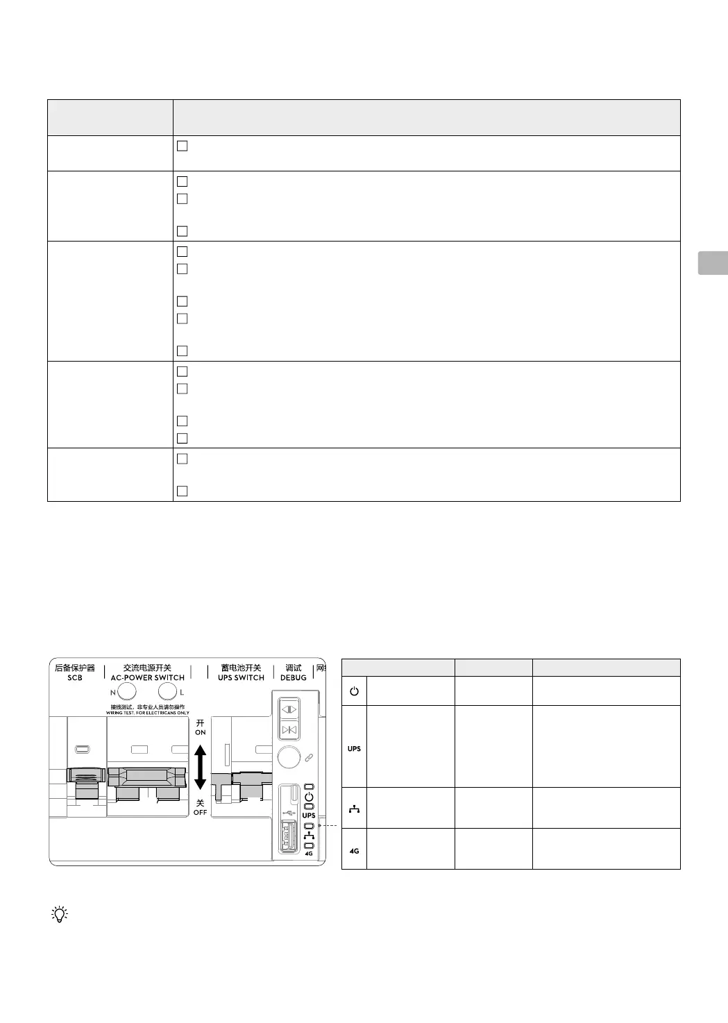 2. Dans un délai de 30secondes, les indicateurs déétat de l’armoire électrique doivent s’afficher comme suit.