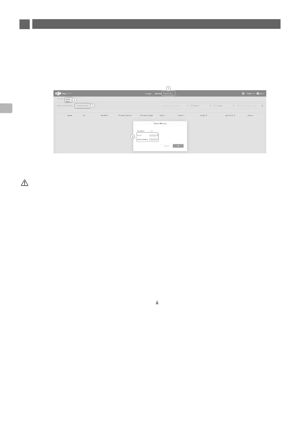 2. Cliquez sur Appareil (Devices) > Dock > Liaison des appareils (Device Binding) comme indiqué dans le
