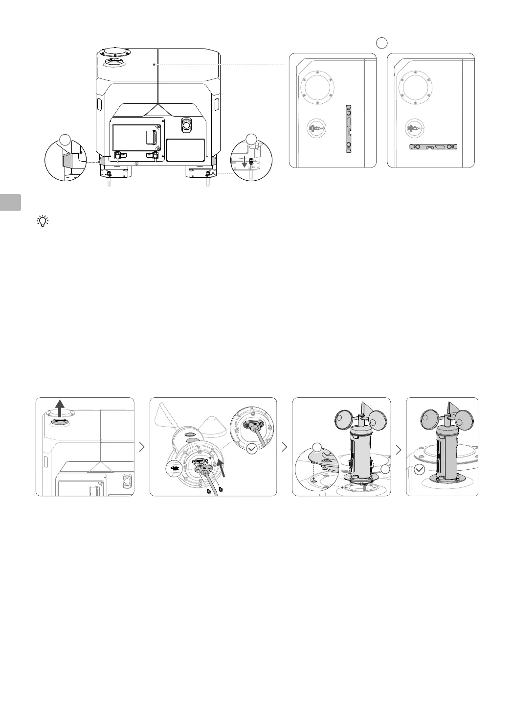 3. Allineare e inserire il modulo indicatore della velocità del vento nel supporto del coperchio del Dock.