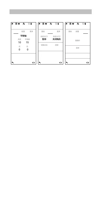 可自定义 C1 与 C2 快捷键功能,可设置暂停、回中、关闭电机、控制