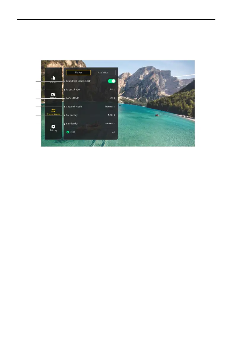 The video transmission of the current device can be set under Pilot settings. Nearby video transmission devices