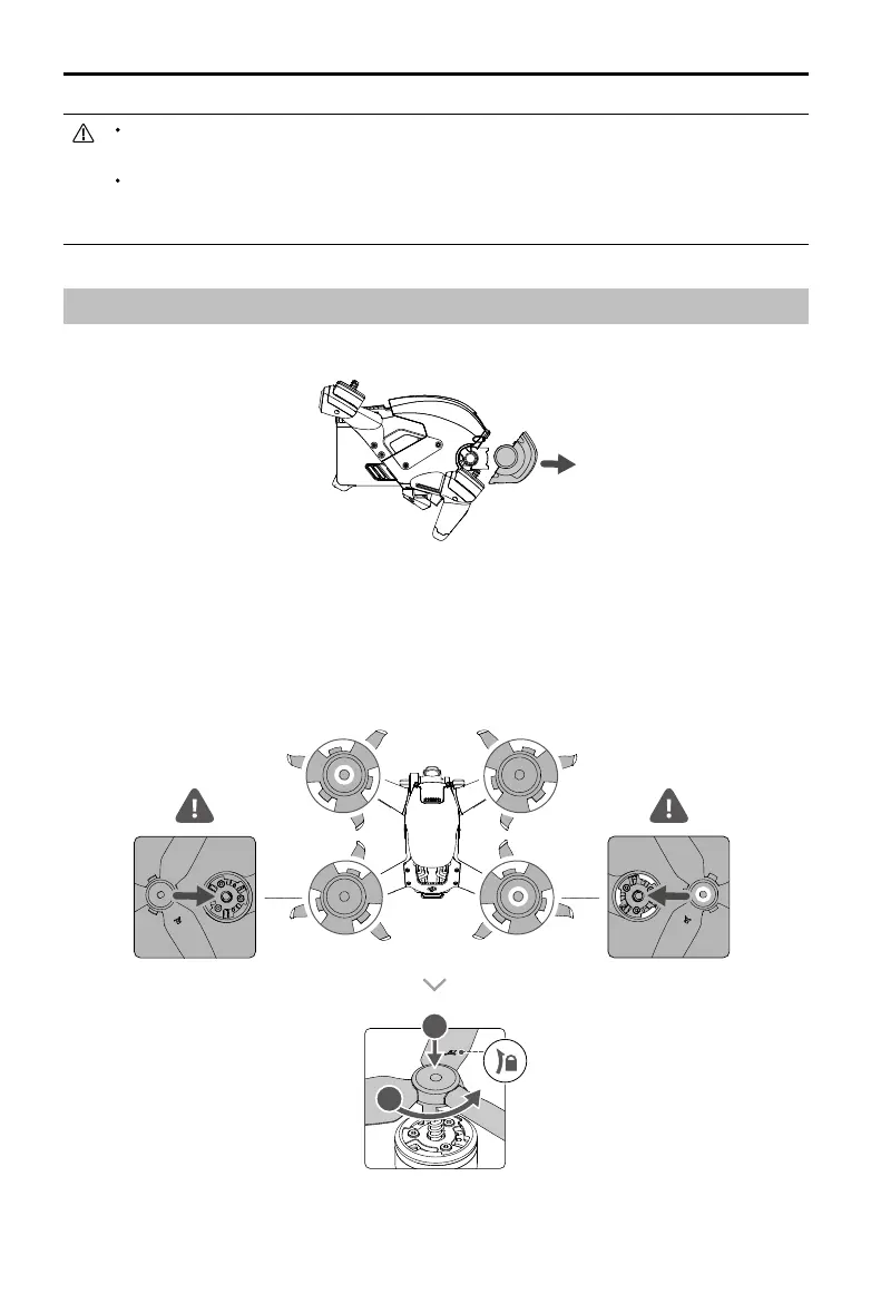 Propellers with and without marks indicate dierent directions of rotation. Attach the propellers with marks to