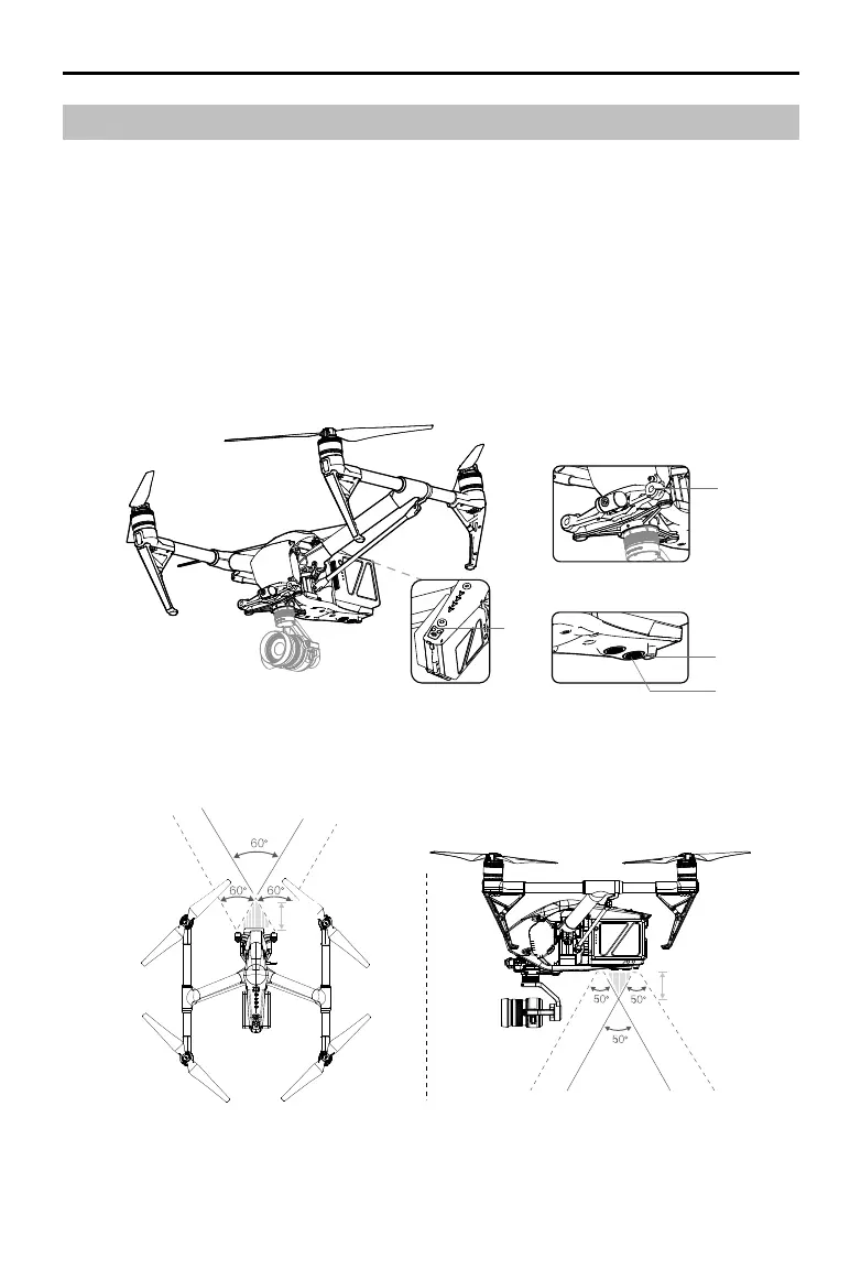 The main components of the Vision System are located on the front and bottom of the Inspire 2,