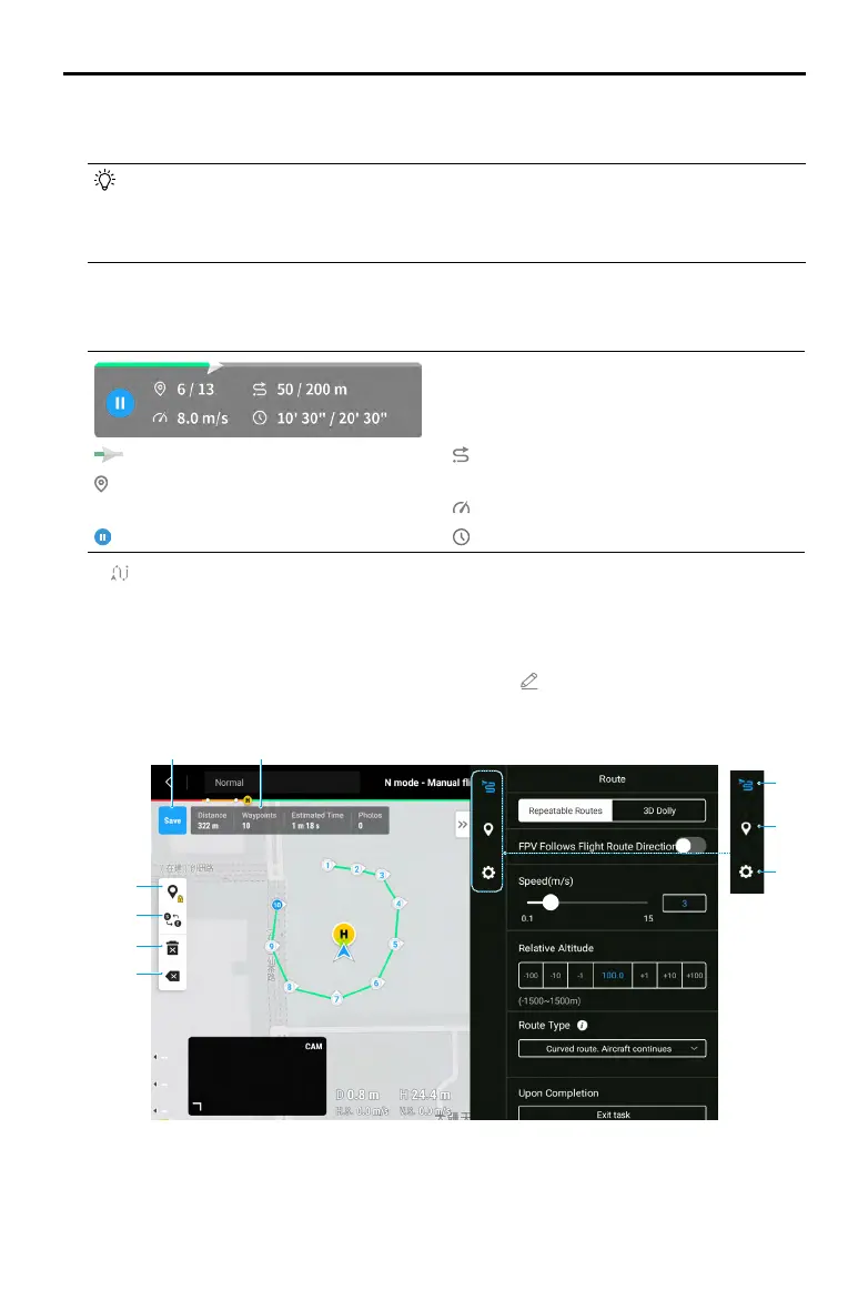 4. Tap Start to begin and execute the ight route mission, the ight route progress panel will