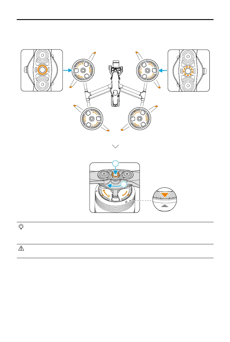 • Be aware of the sharp edges of the propellers when examining, mounting, or removing