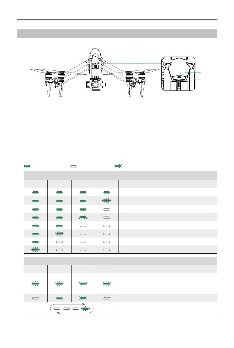 2. Indicators: display the current aircraft battery level or the aircraft status.