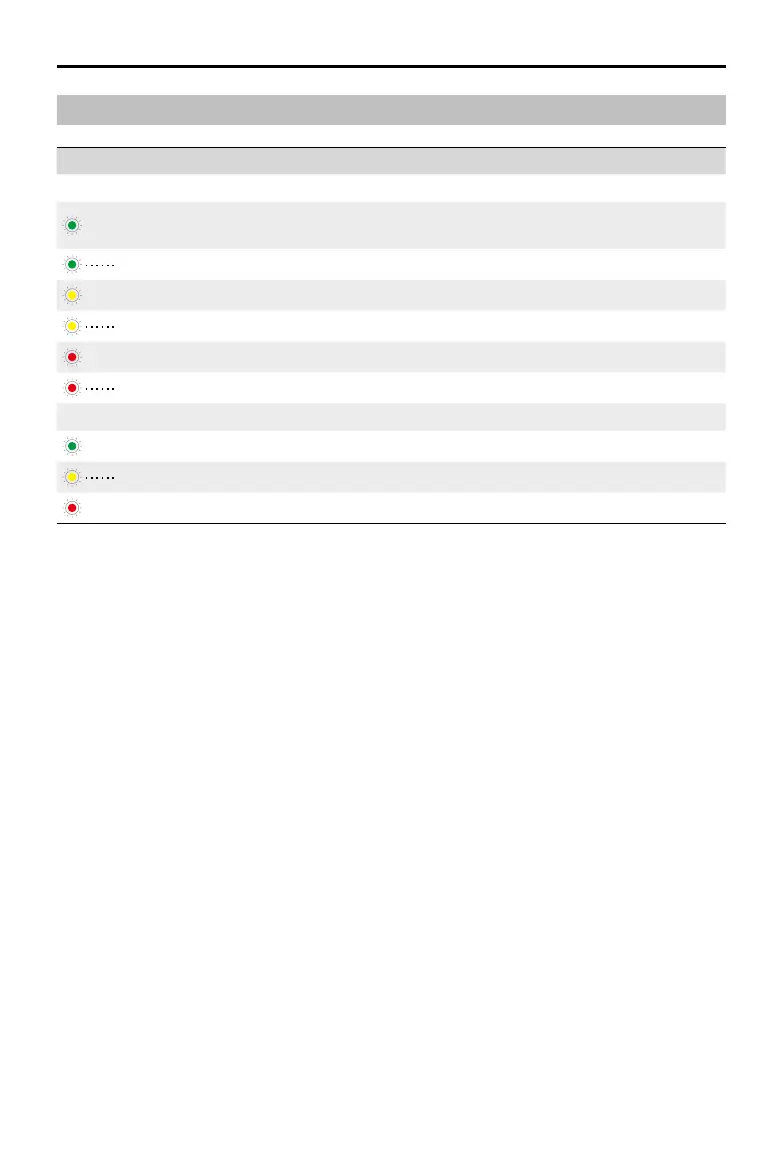 Blinks green Charging, while the ashing speed indicates the charging speed