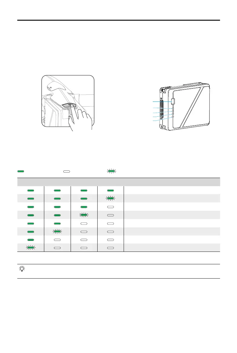 show current battery level after the aircraft is powered on. The indicator turns off after the