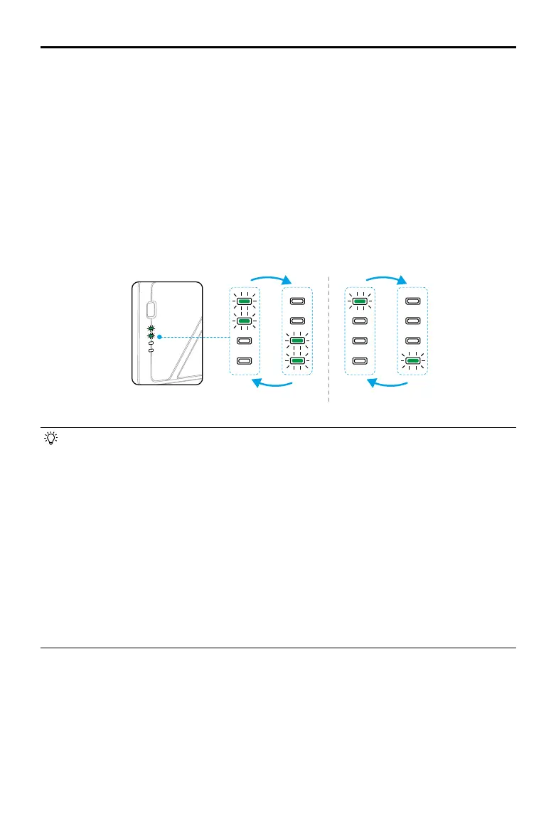 4. When the battery is warming up and staying warm the battery level LEDs will blink as follows.
