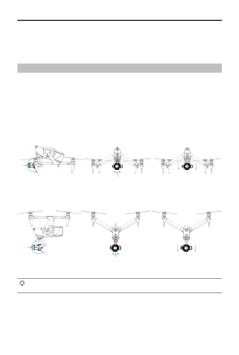 and videos when in ight. Refer to the gure below for the tilt, pan, and roll range of the gimbal.