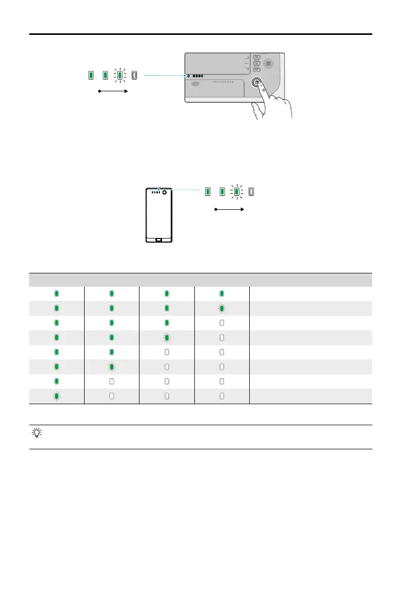 Press the button on the external battery, and the LEDs will indicate the current battery level of