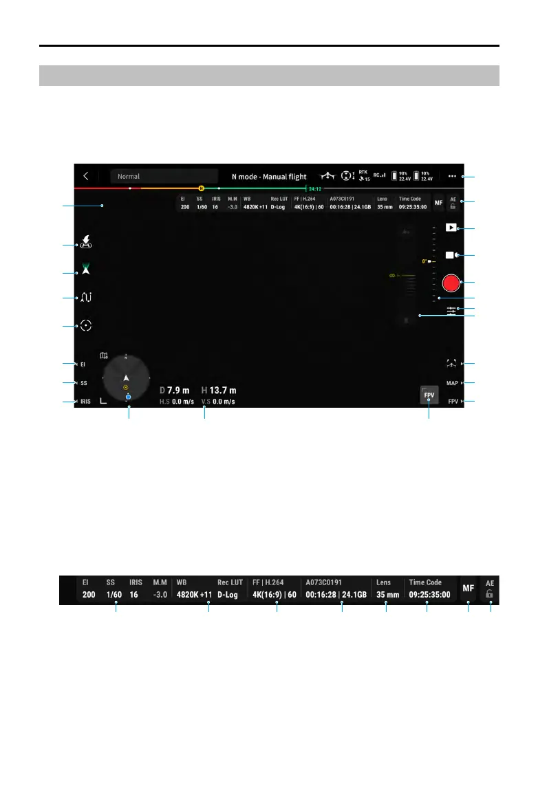 2. Top Bar: displays product information such as aircraft status, ight mode, and signal quality.