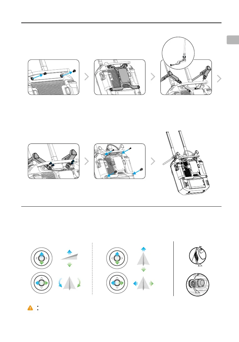 right stick controls the aircraft’s forward, backward, and lateral movements. To adjust the FPV camera, press and hold the C2