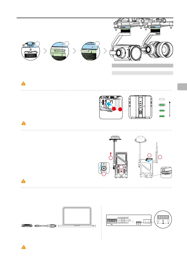 • Assicurarsi di accendere per primo il sistema di terra D-RTK. NON accendere il velivolo prima che il LED di stato operativo del sistema di terra D-RTK diventi verde