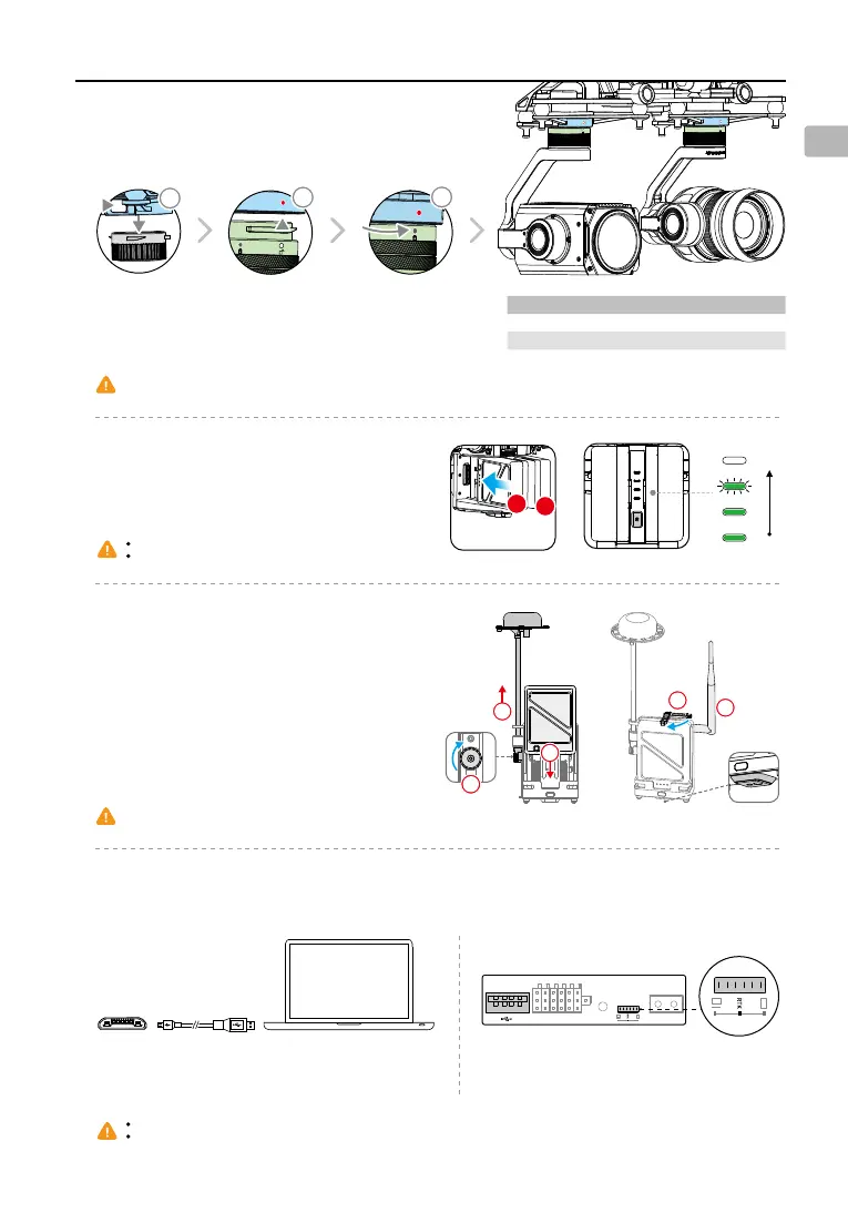 Ensure that the D-RTK Ground System is powered on rst. DO NOT power on the aircraft before the D-RTK Ground System’s Working Status LED is solid green.