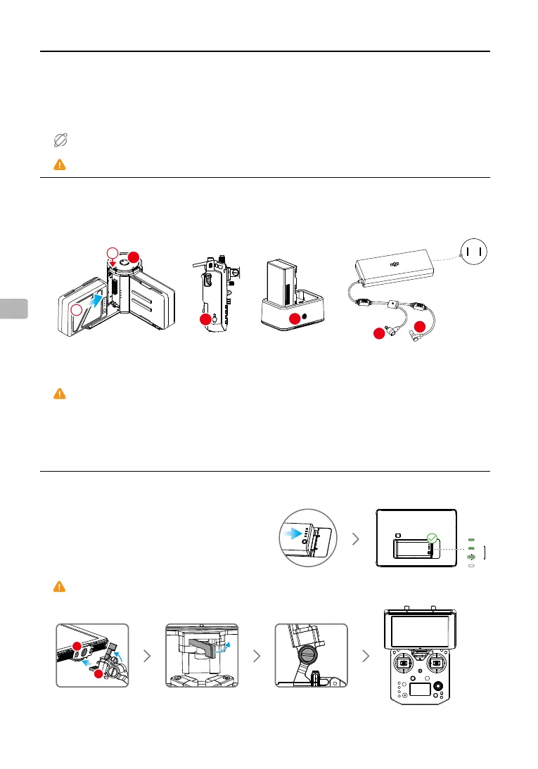 • Подсоедините аккумуляторы Intelligent Flight Battery к дрону и подключите к ним питание. Если температура аккумулятора ниже 15 °C, система включит