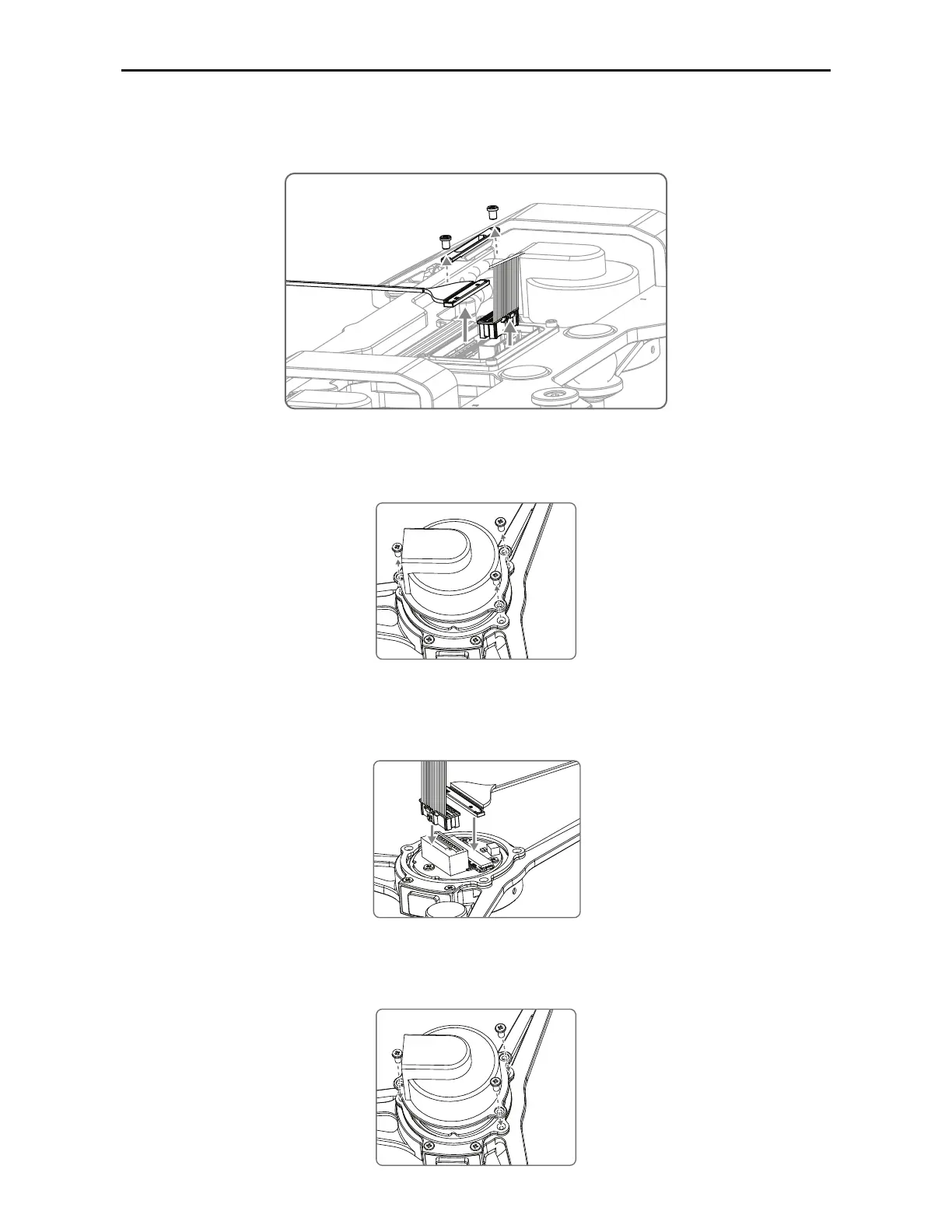 6. Tighten the cover onto the single downward gimbal connector with screws.