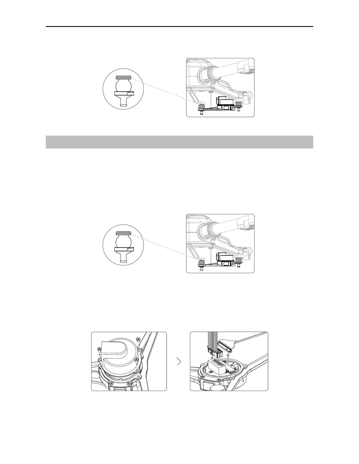 2. Remove the three screws on the top of the single downward gimbal connector.