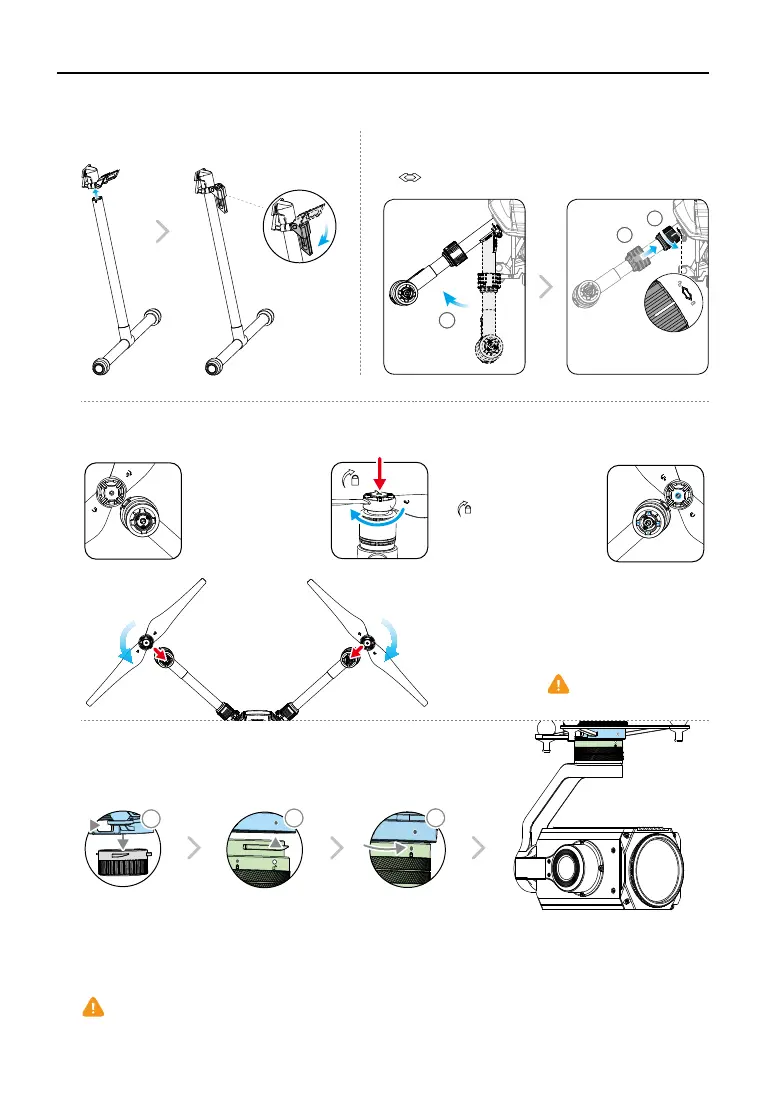 移除云台相机时,需要按住解锁按钮,才能旋转云台相机的快拆接口。为方便下次安装,请在移除云台时,务必将接口旋转到位才取