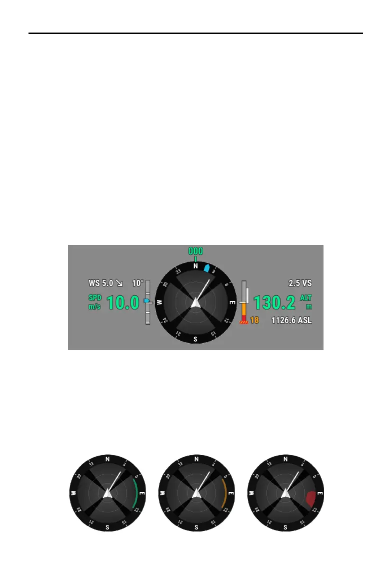 aircraft, while the dark areas are the blind spots. During ights, keep the aircraft speed vector line