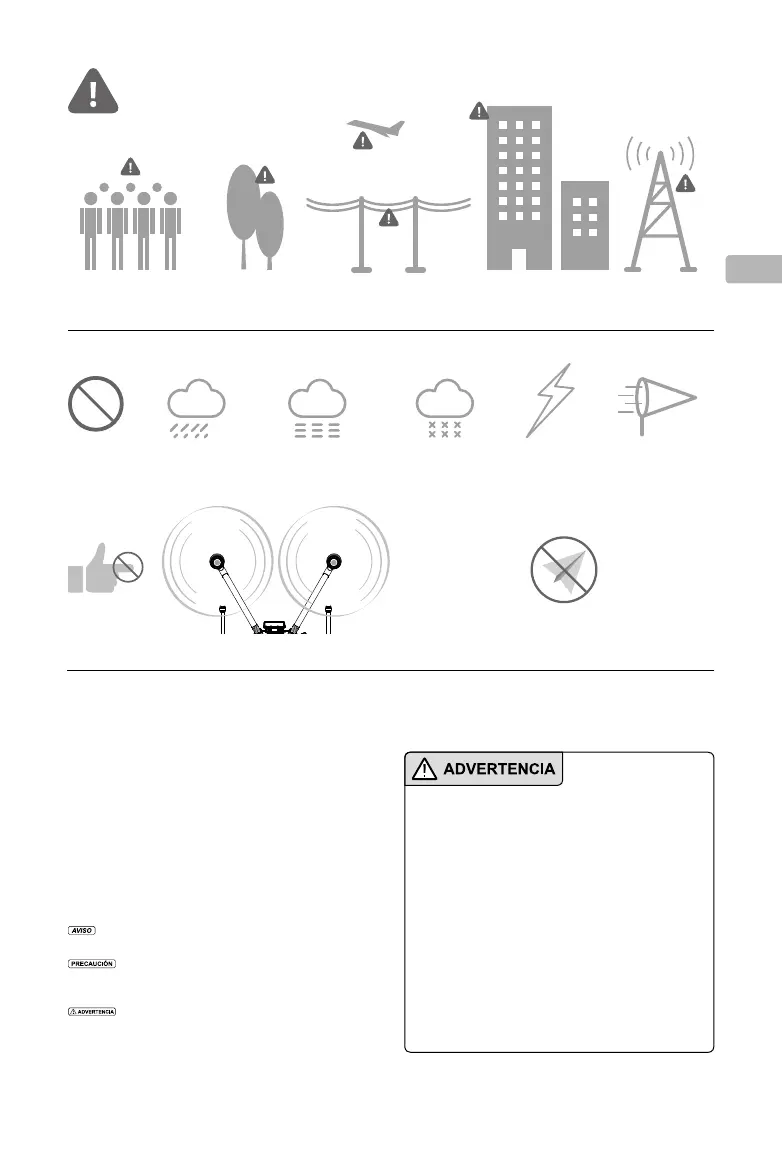 NO utilice la aeronave en condiciones climáticas adversas como lluvia, nieve, niebla ni con una