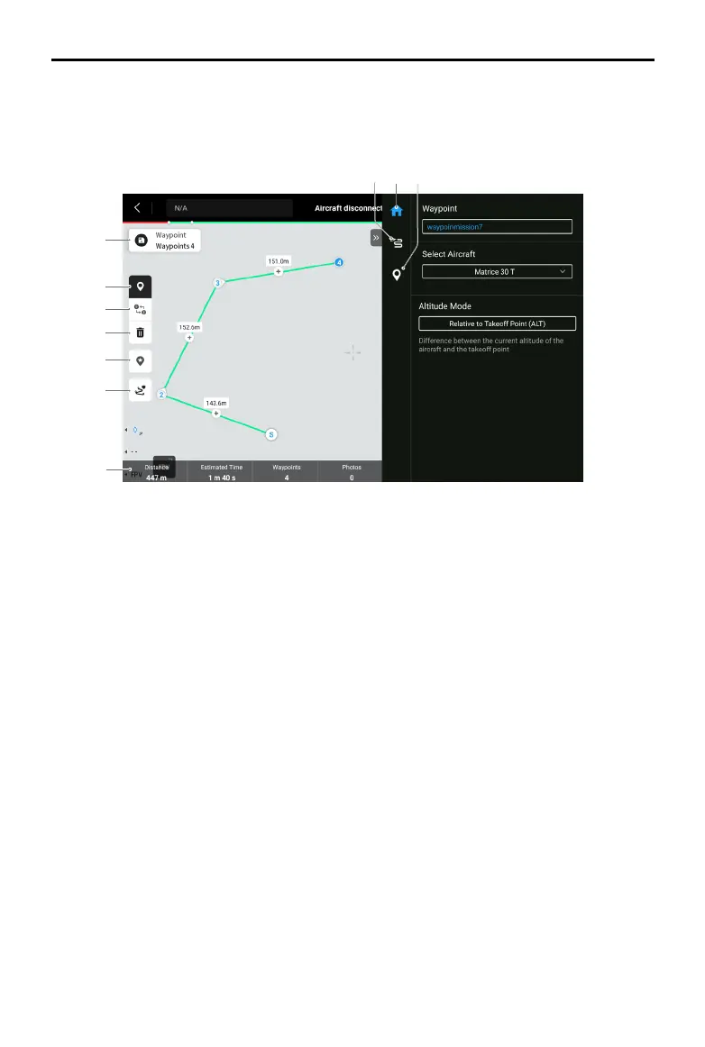 5. Flight Route Information: displays the ight length, estimated ight time, waypoint quantity, photo