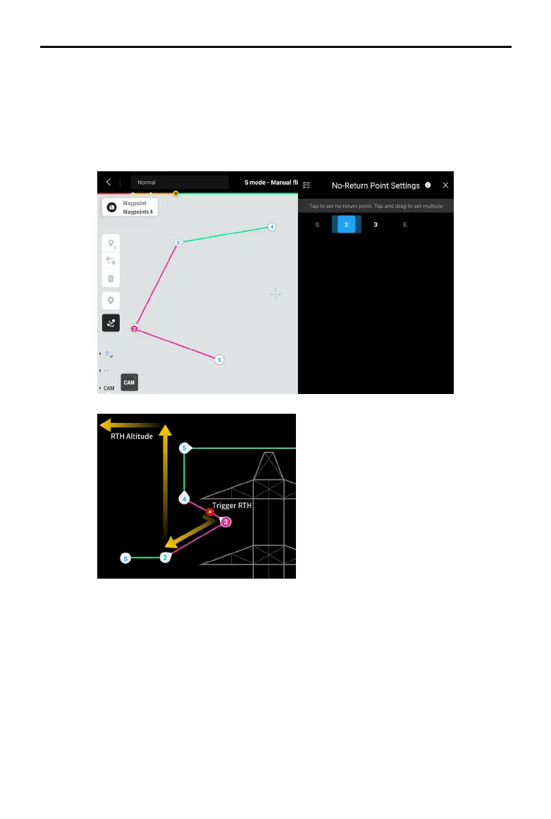 will be marked as a no-return area (Both the previous and next waypoints are not included.) When