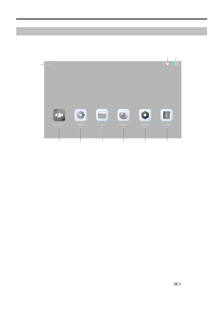 Displays the battery level of the internal battery of the remote controller. The battery level of the