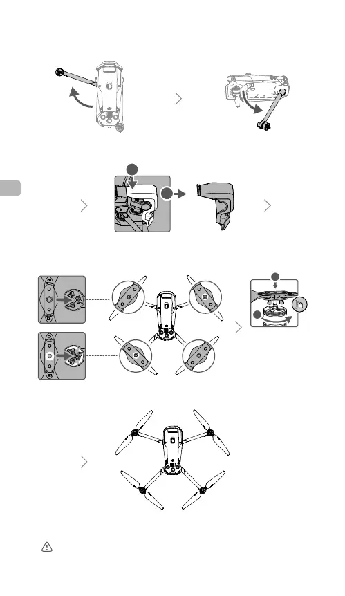 • Dépliez les bras avant en premier, puis les bras arrière. Tous les bras et les