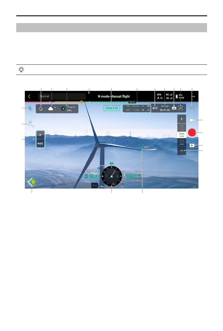 1. Top Bar: displays the aircraft status, flight mode, signal quality, etc. Refer to the Top Bar