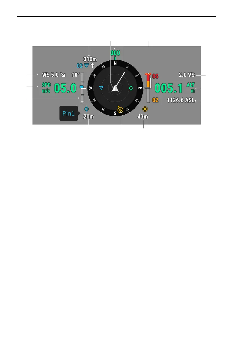 5. Altitude (ALT): displays the altitude of the aircraft relative to the takeoff point.