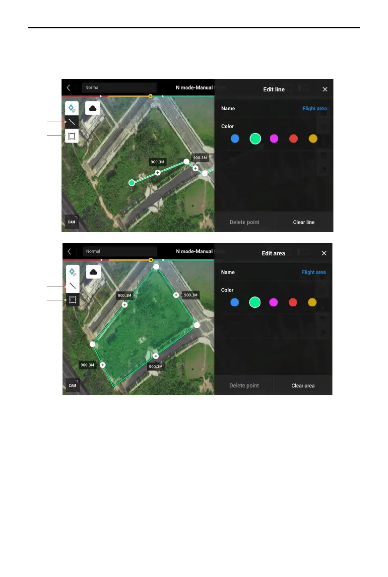 When connected to DJI Flighthub 2, the DJI Pilot 2 app and the point, line and area