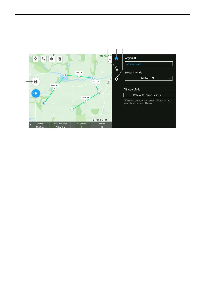 5. Parameters List: edit the route name, advanced flight route settings, and altitude mode.