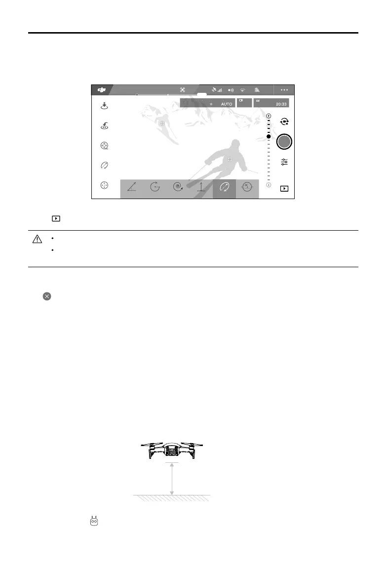 subject) and choose a shooting mode. Tap “GO” to begin recording. The aircraft will y back to its