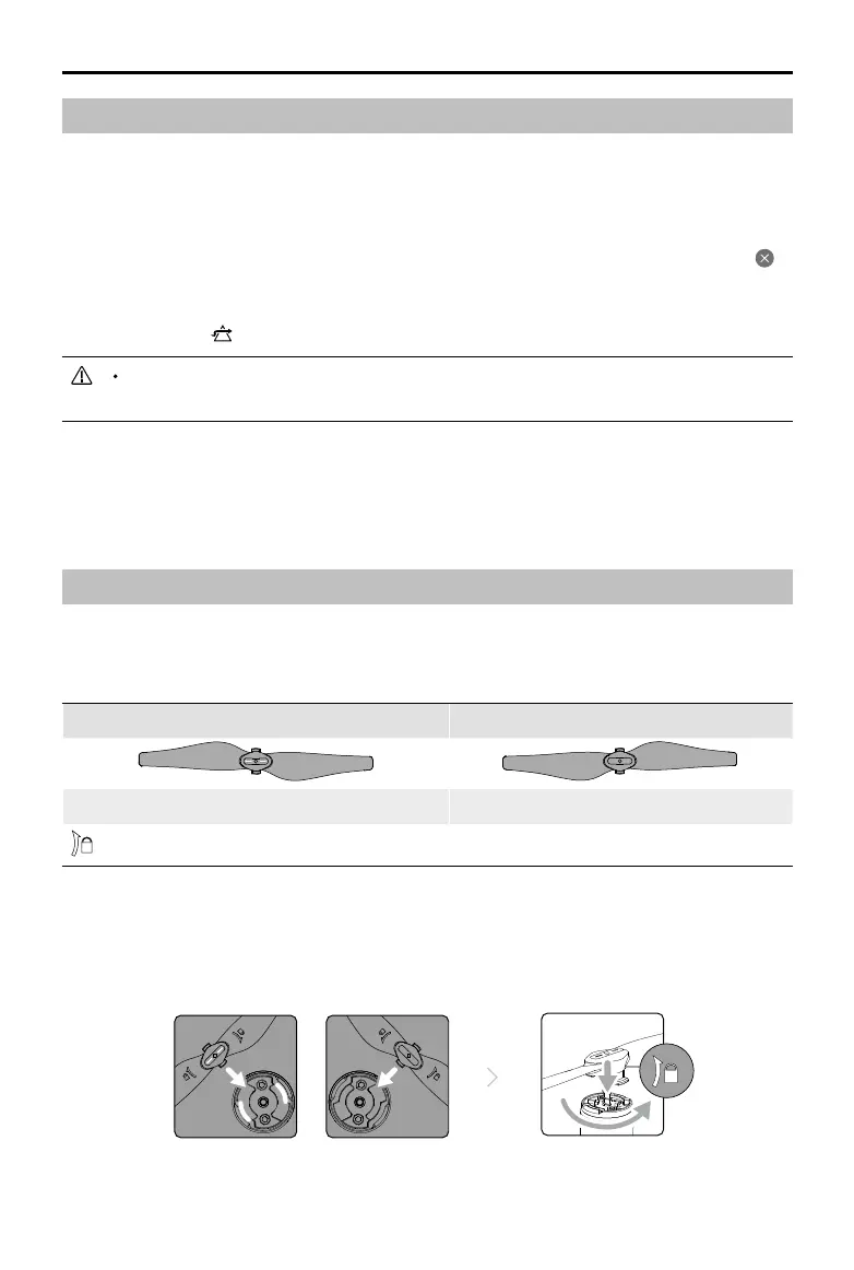 onto the mounting plate and rotate in the lock direction until it is secured. Attach unmarked propellers to