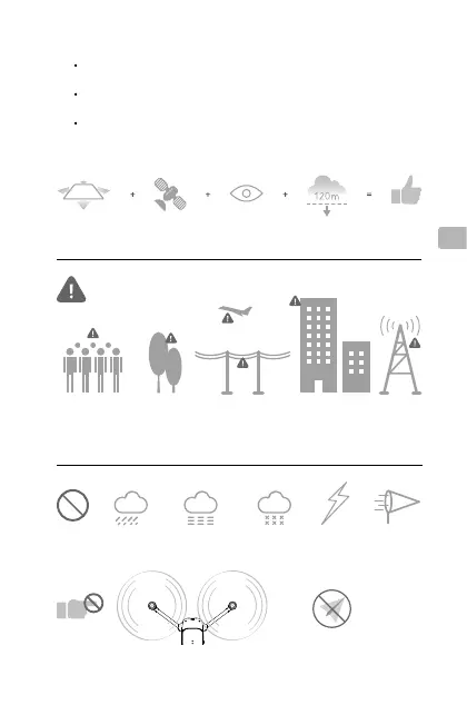Não use o quadricóptero em condições climáticas adversas como chuva,
