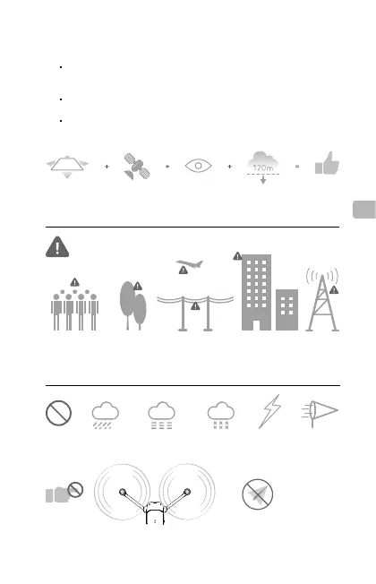 Следует избегать полетов над или в непосредственной близости от препятствий, скоплений